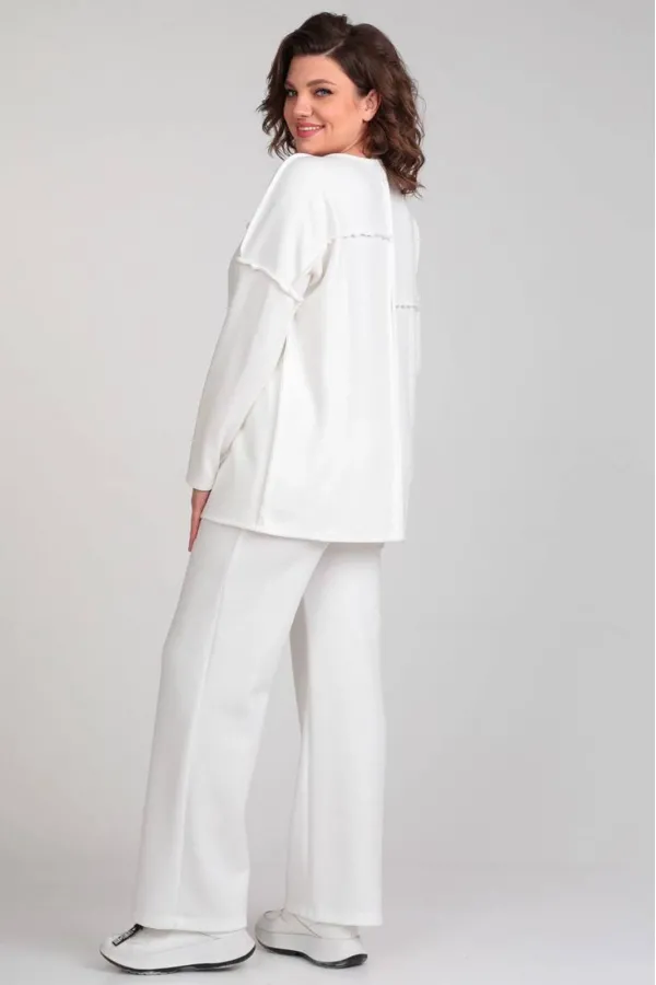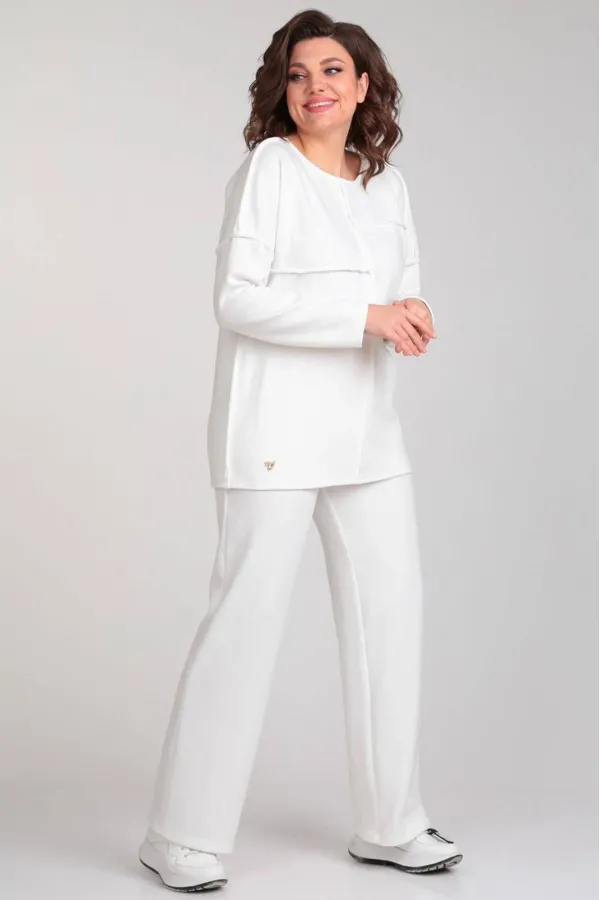 Комплект брючный : джемпер и брюки из трикотажного полотна. Джемпер с разрезными на 4 части передом и спинкой,швы обработаны припусками на лицо. Горловина округллой формы обработана распошивочным швом. Низ рукава и издел... Читать далее...