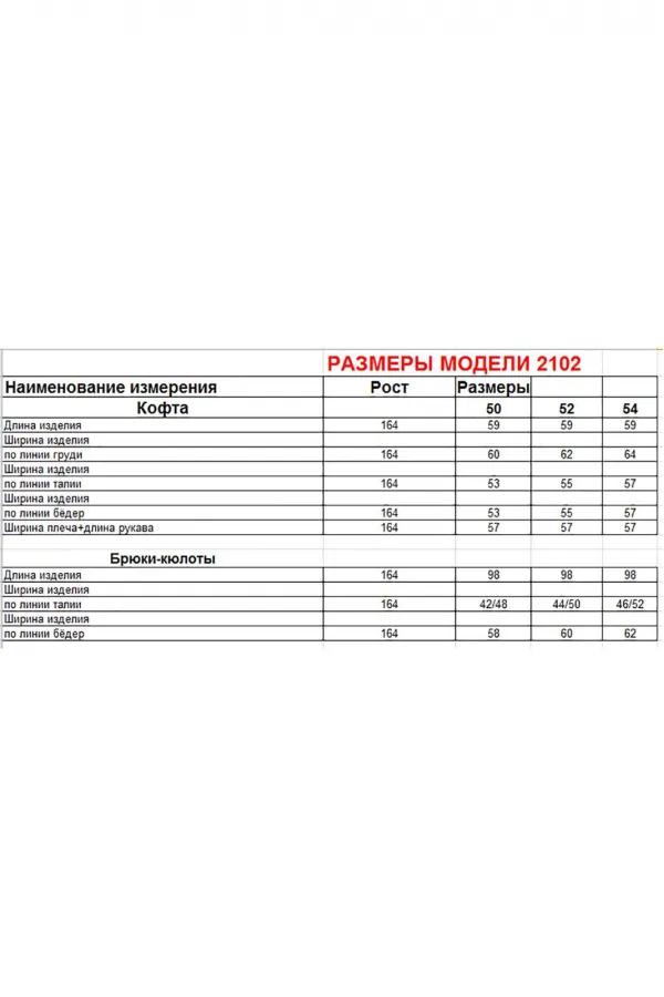 | Ткань | Кофта: вискоза 80% пэ 20%. Кюлоты: вискоза 59% пэ 38% эластан 3% |