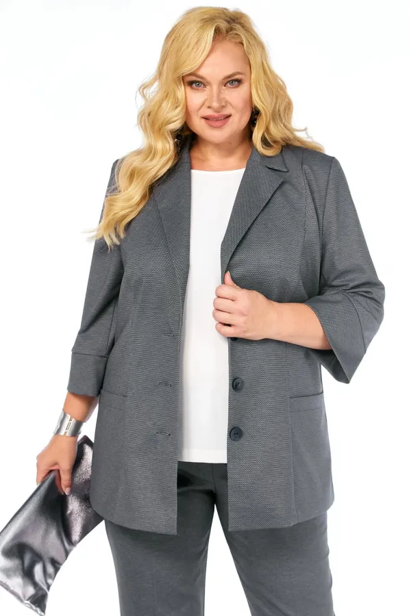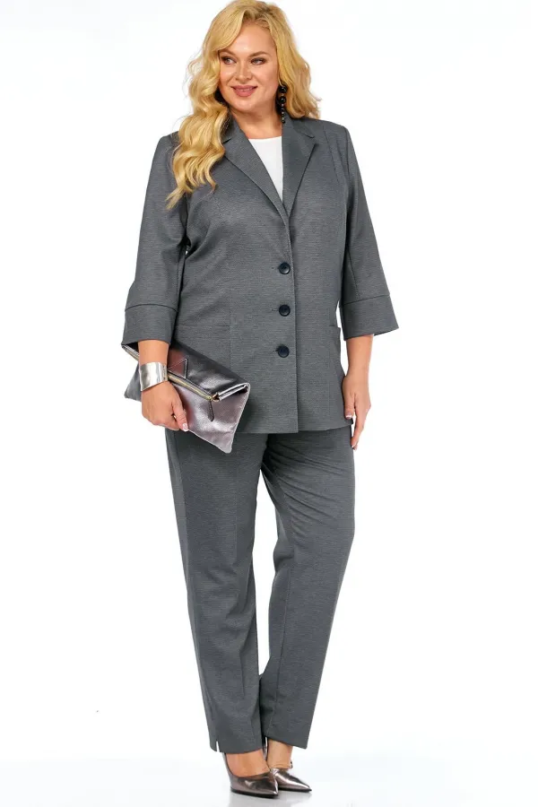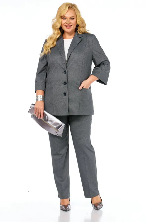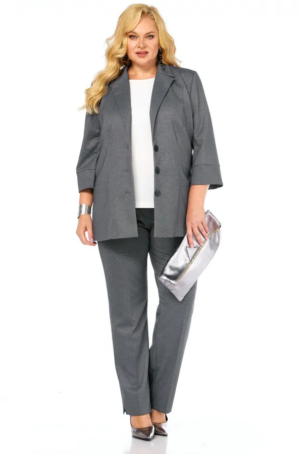 Комплект тройка, состоит из жакета, блузки и брюк, выполнен