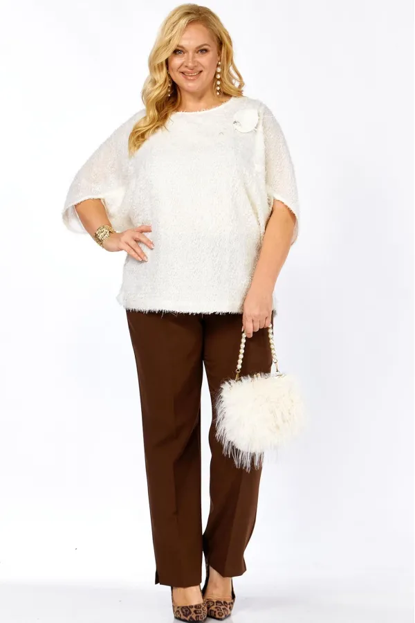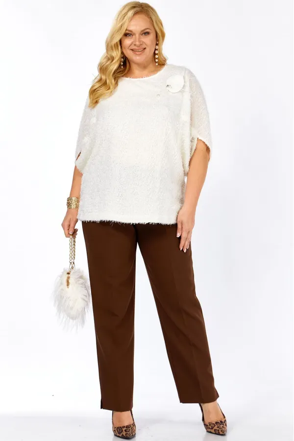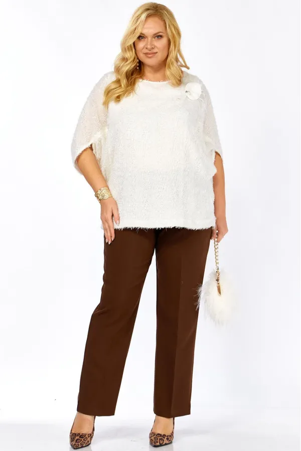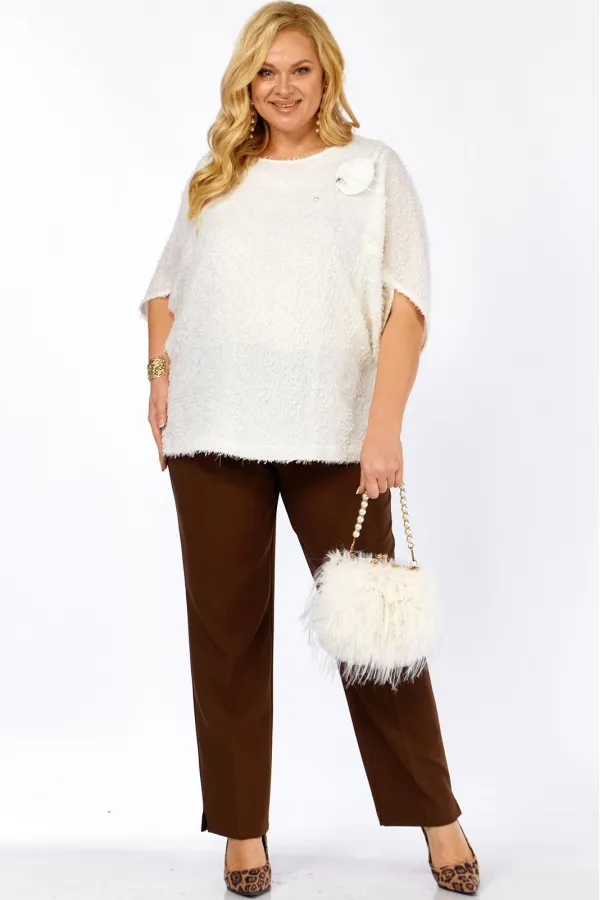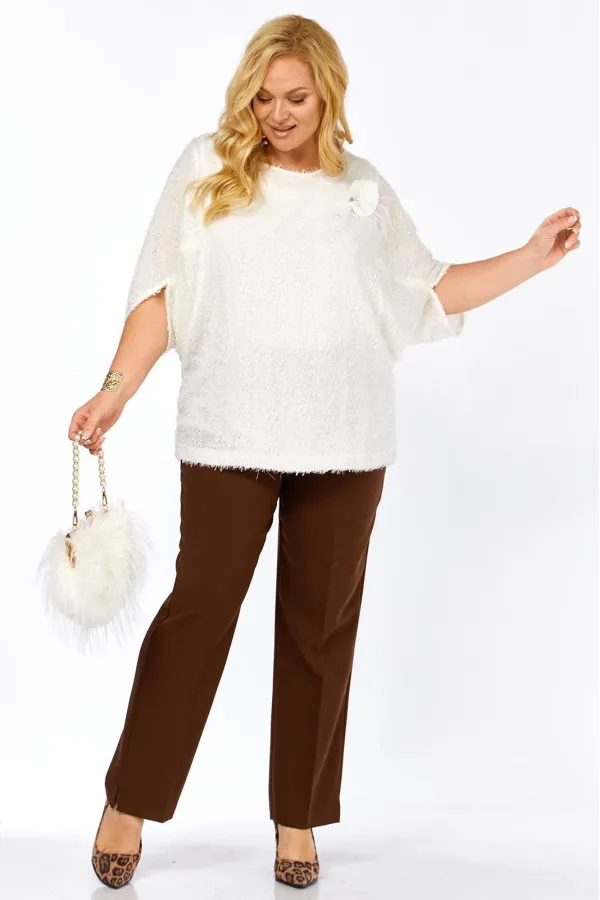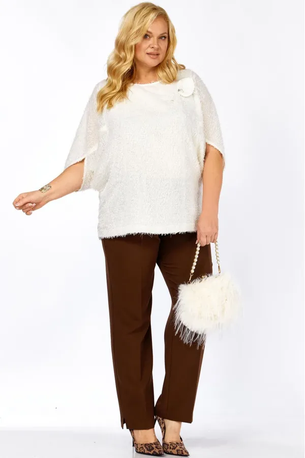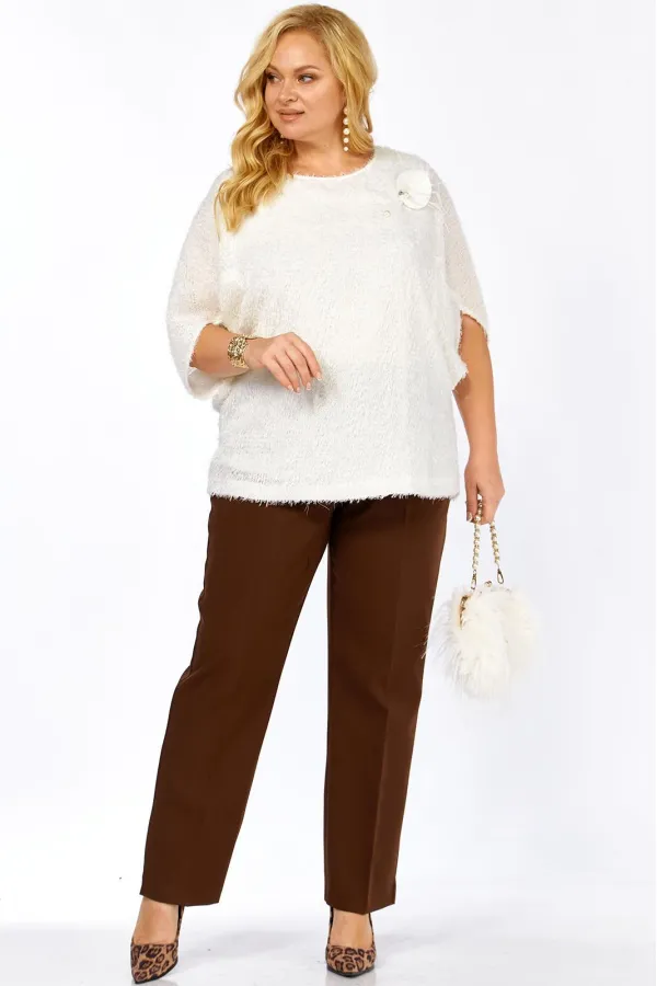 дизайнерская брошь. Брюки слегка зауженные к низу. Пояс притачной,