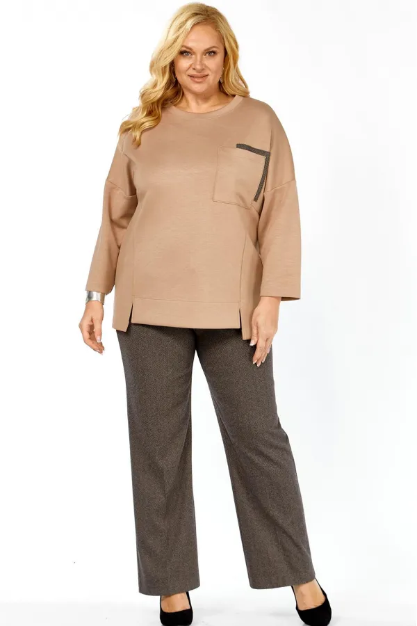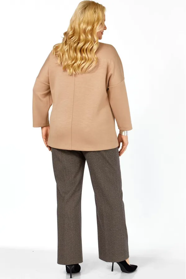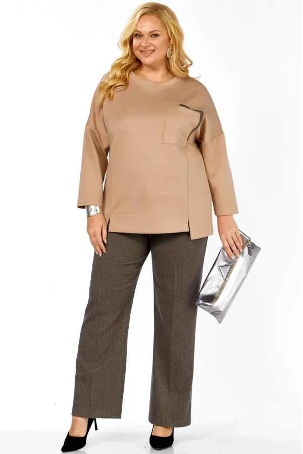 Комплект 2-ух предметный, состоит из блузки и брюк. Очень удобная,уютная блуза из трикотажного полотна. Изделие полуприлегающегосилуэта. Горловина аккуратной округлой формы. Рукав втачной,линия плеча спущена полной длины... Читать далее...