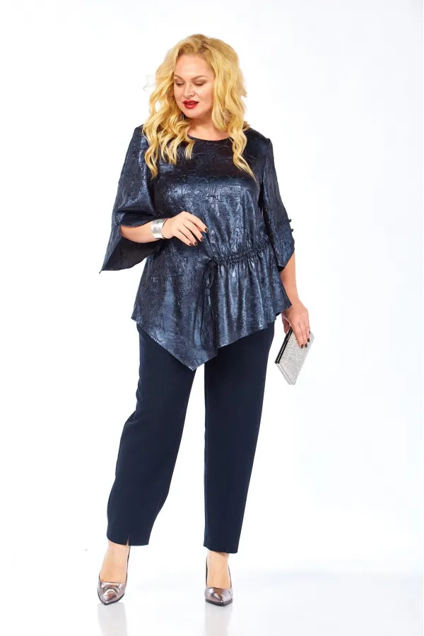 женственный костюм состоит из блузы и брюк. Блуза