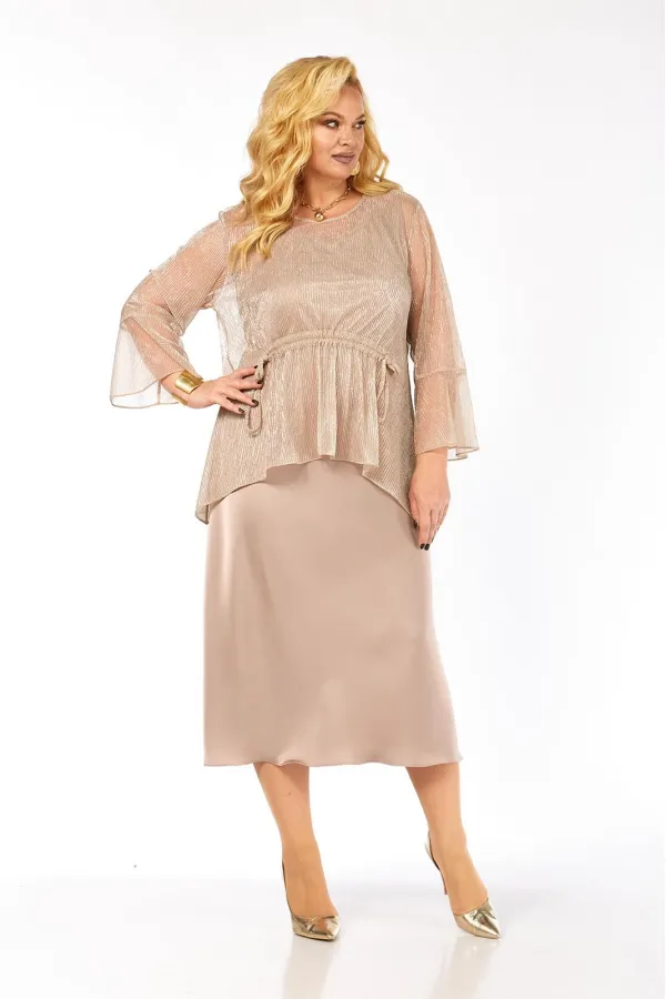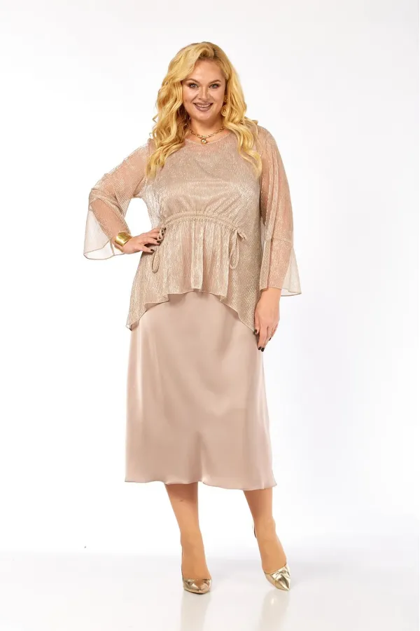 Уникальное платье, сочетает в себе изысканный дизайн. Модельплатья подчеркнет вашу красоту и универсальность. Модель состоитиз двух изделий платье и блуза. Платье полуприлегающего силуэта,длина миди Блуза выполнена из во... Читать далее...