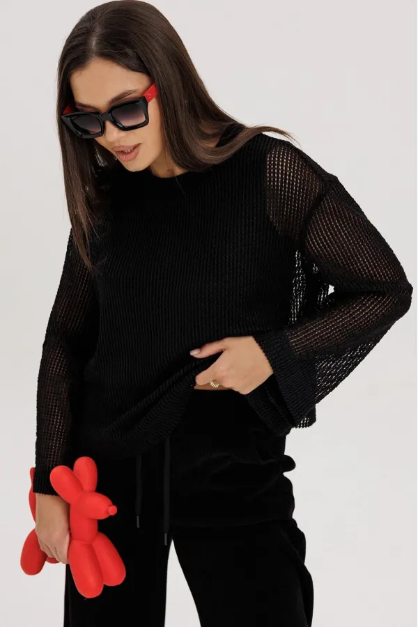 Джемпер свободного силуэта, покроя с заниженной линией плеча.
