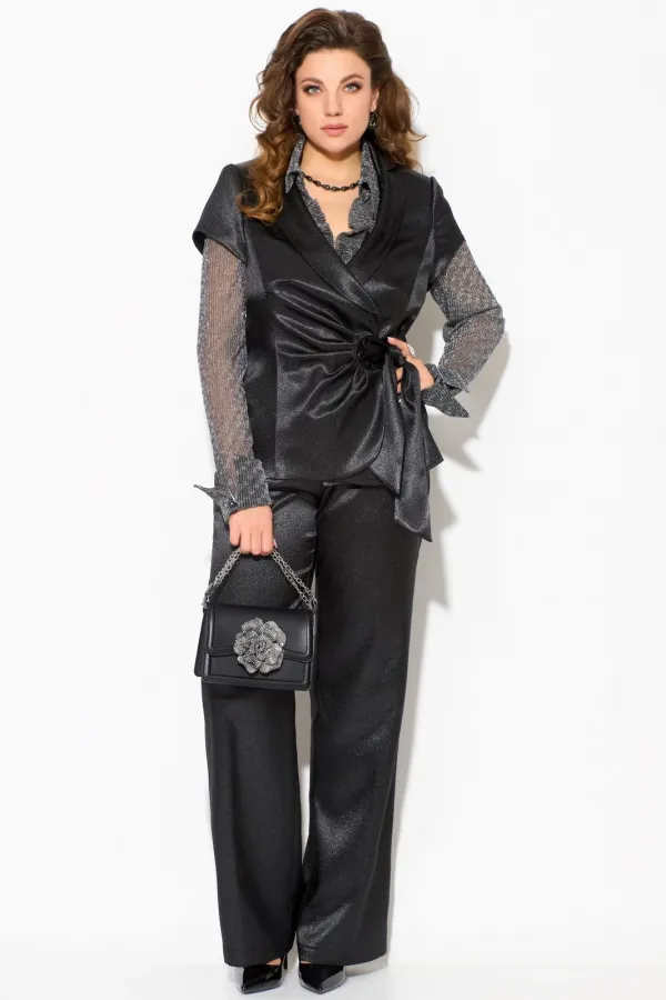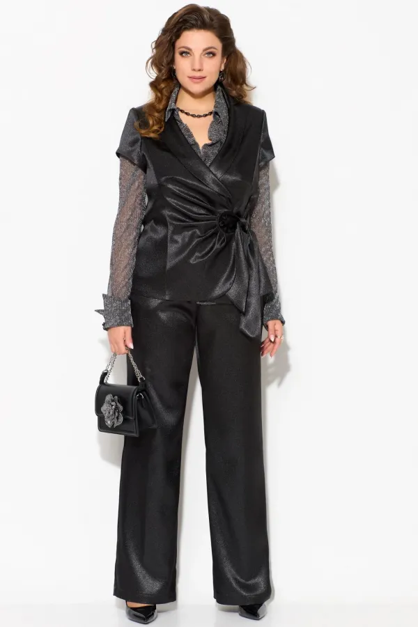 Нарядный стильный костюм Аста прилегающего силуэта, выполнен из текстильной сатиновой ткани.