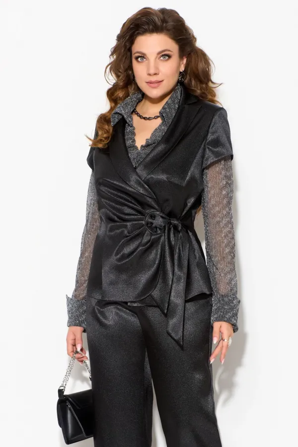 Нарядный стильный костюм Аста прилегающего силуэта, выполнен из текстильной сатиновой ткани.Модный жакет на подкладке прилегающего силуэта с драпировкой на талии, с поясом. Застёжка двухбортная. По полочке рельефы и выта... Читать далее...