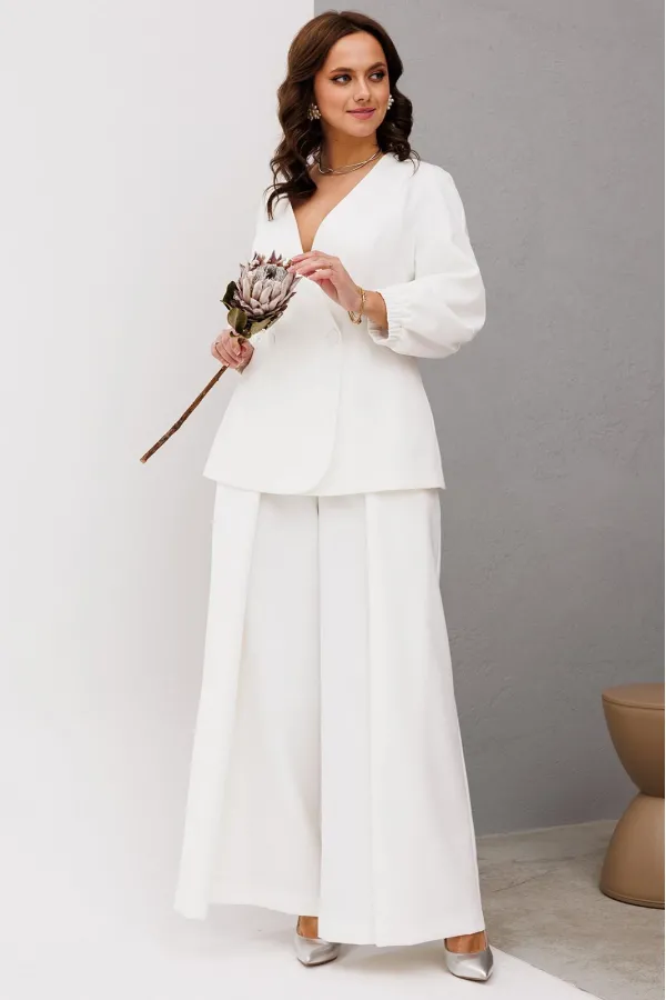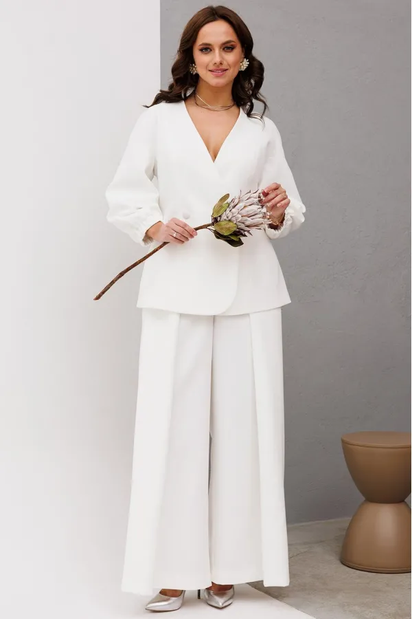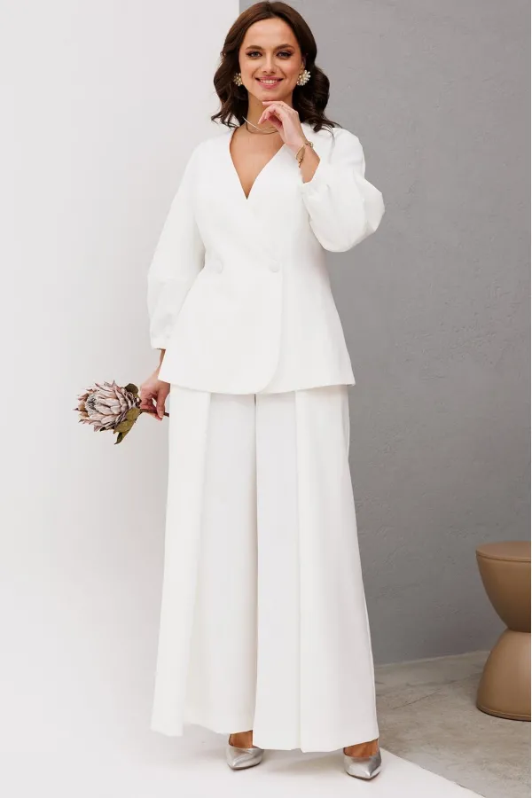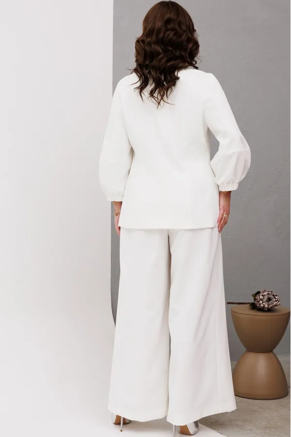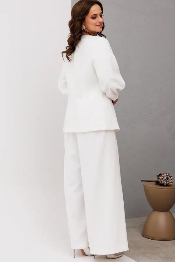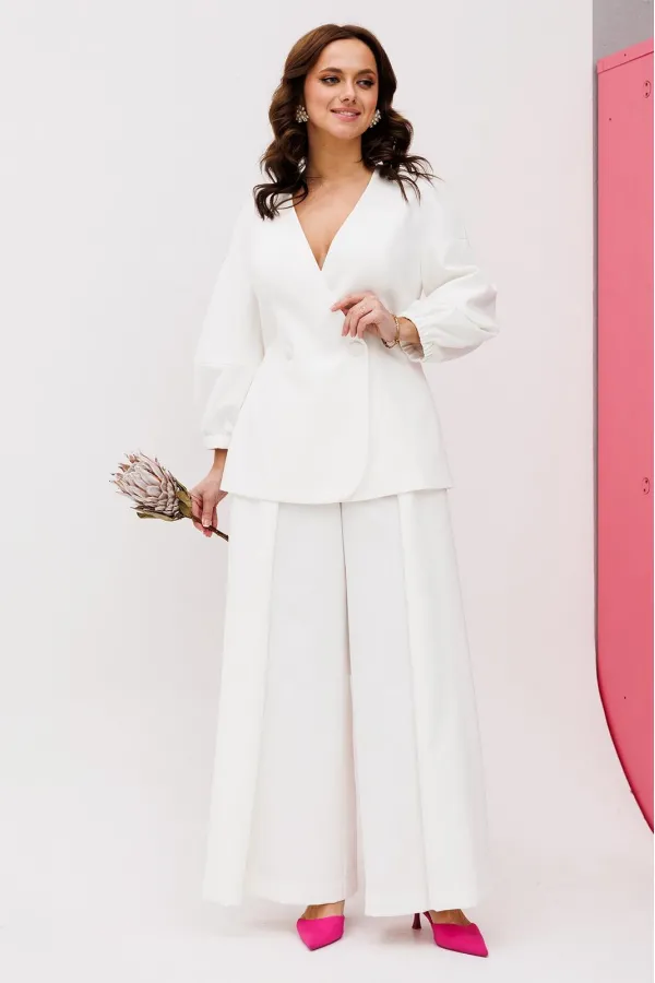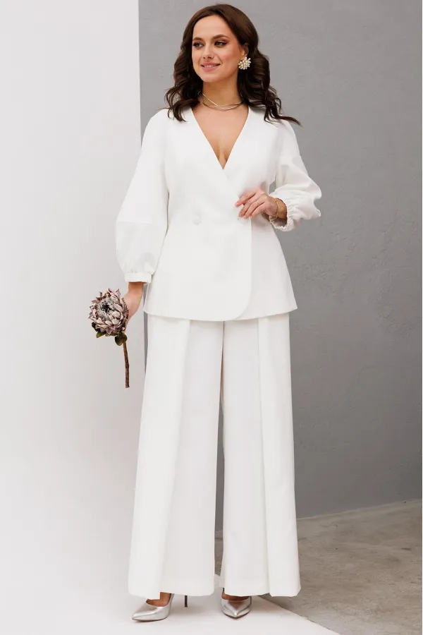 Костюм женский состоящий из жакета и брюк. Жакет прилегающего силуэта, вырез горловины V-образный. Рукав спущенный, широкий ¾, внизу на резинке. По переду по спинке рельефы. Жакет двубортный с застежкой на петли и пугови... Читать далее...