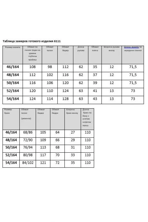 Длина брюк – 110 см с учетом ширины пояса.
