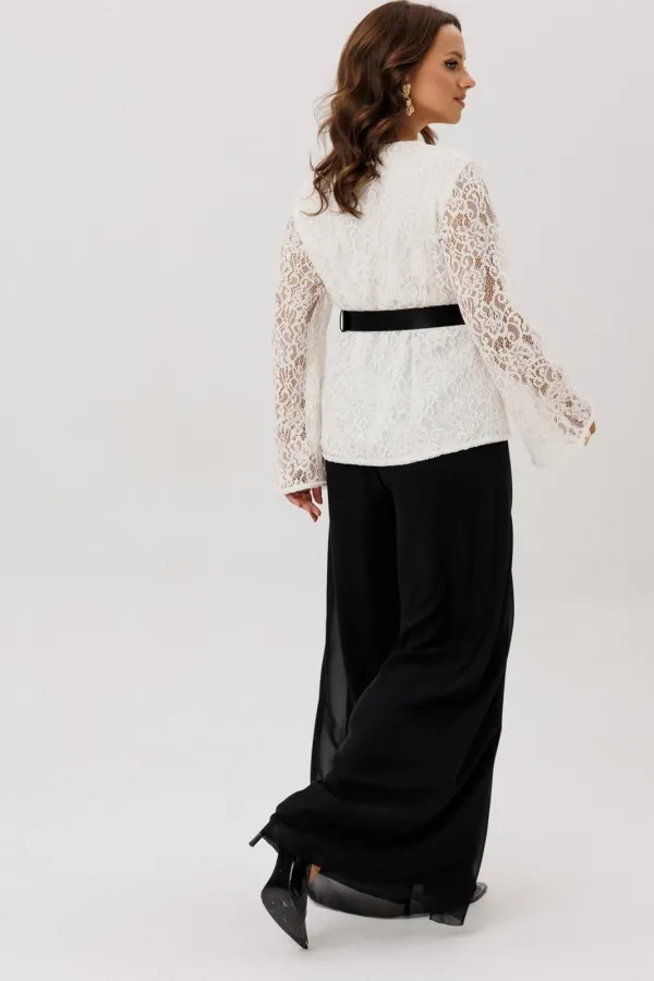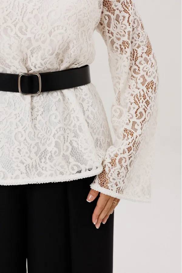Блузка полуприлегающего силуэта, вырез горловины округлый, рукав втачной-клеш. Изделие на подкладке, без застежки.
