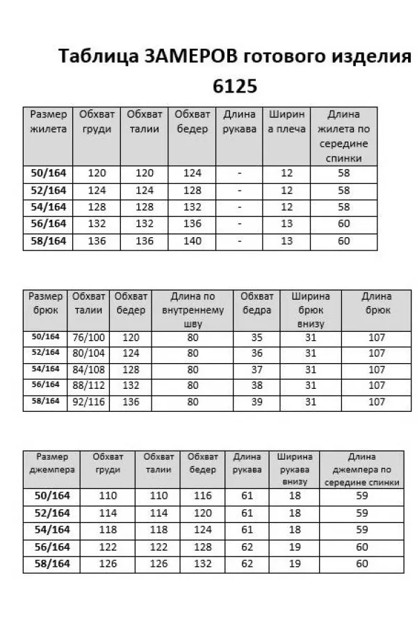 | Ткань | Жилет и брюки: 98% полиэстер 2% спандекс. Джемпер: 81% полиэстер 14% вискоза 5% спандекс. |