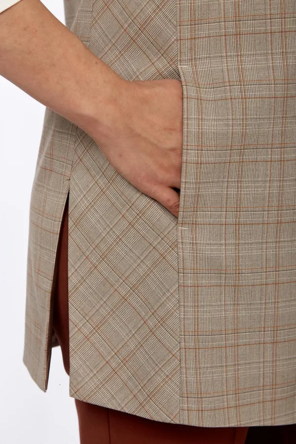 Состав: жилет: полиэстер – 62% вискоза – 36% спандекс – 2% брюки: полиэстер – 72% вискоза – 24% спандекс – 5% блуза: вискоза – 96% эластан – 4%