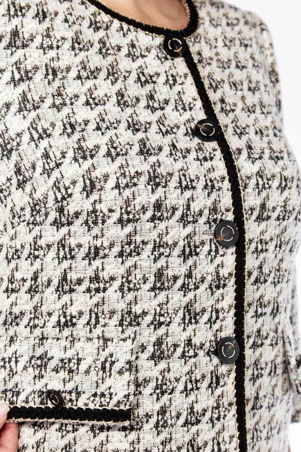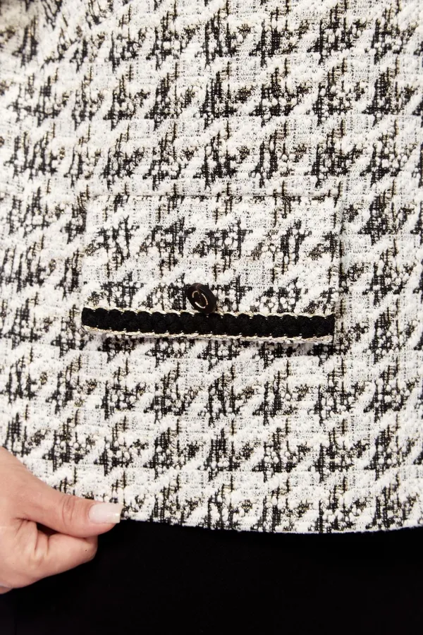 | Ткань | Жакет: Полиэстер — 60% вискоза — 25% метал. нить — 15%. Юбка: Вискоза — 64% нейлон — 32% спандекс — 4%. Топ: Полиэстер — 80% вискоза — 20%. |