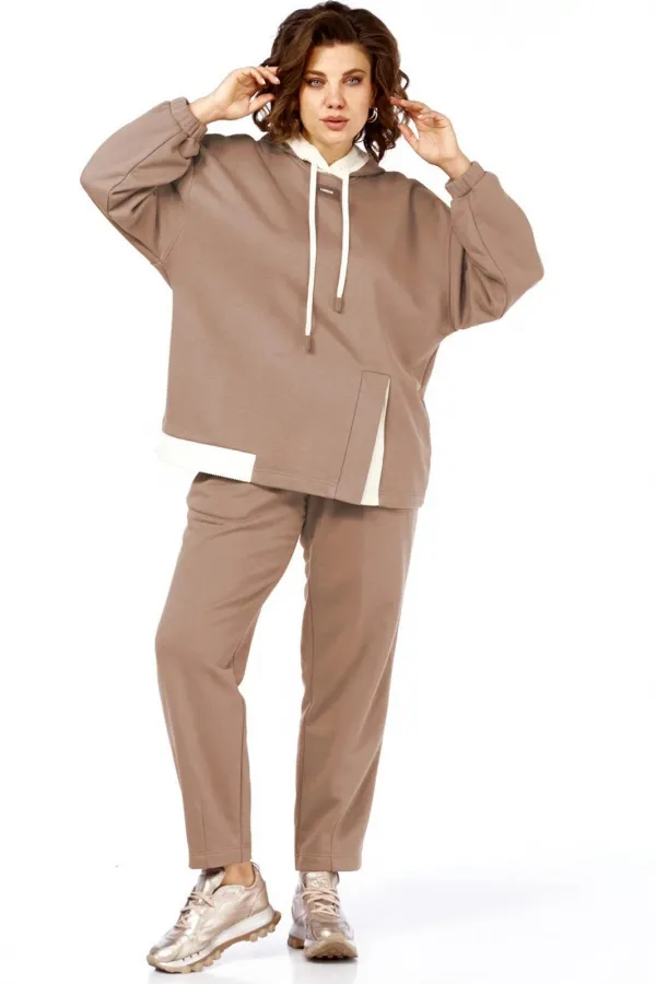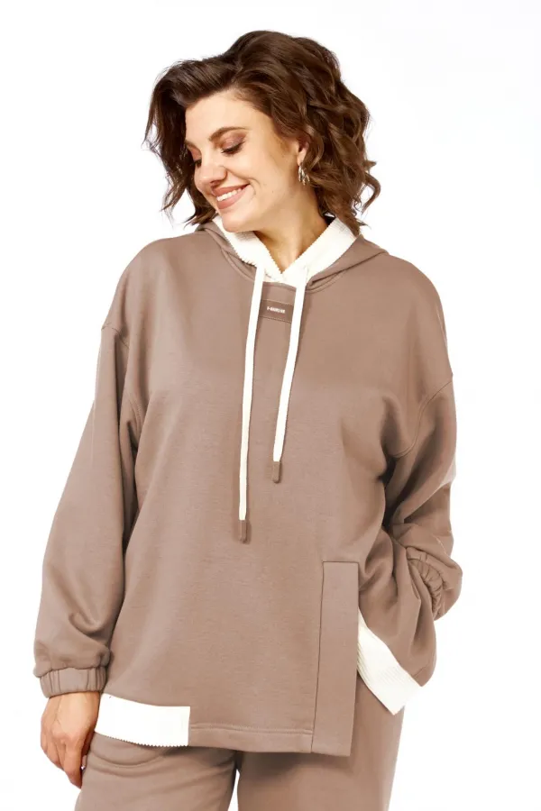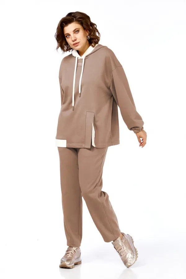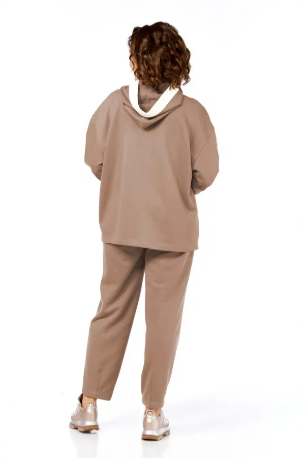Костюм спортивный из хлопкового трикотажного полотна. Хорошо подойдёт для прогулок в прохладную погоду и на каждый день.Костюм состоит из байки и брюк. Байка прямого силуэта, с капюшоном. Линия плеча спущена. Капюшон отд... Читать далее...