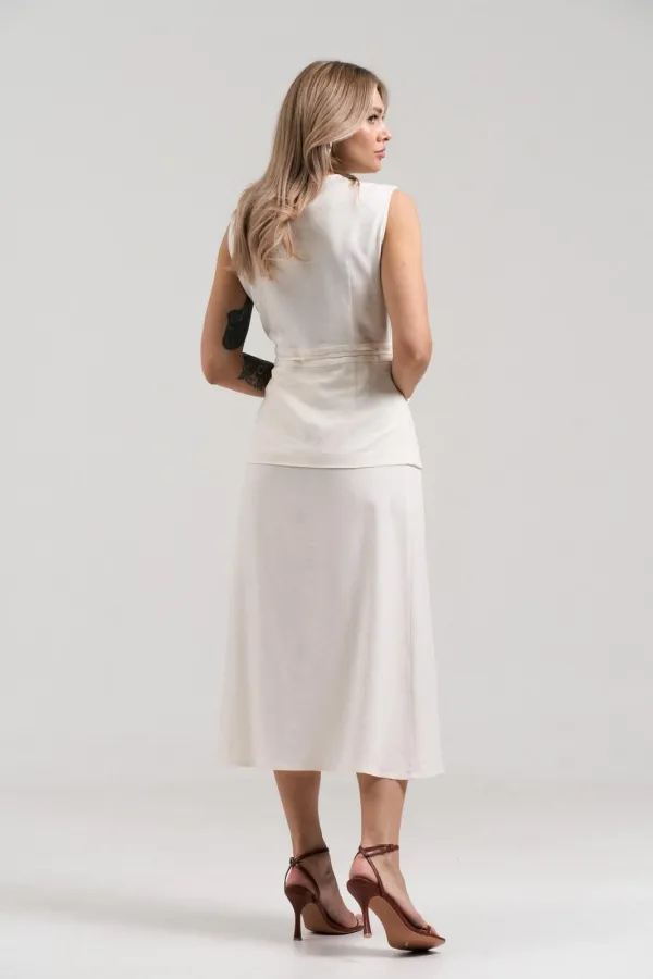 Летний юбочный комплект из ткани лен -вишер, цвета натурального льна.