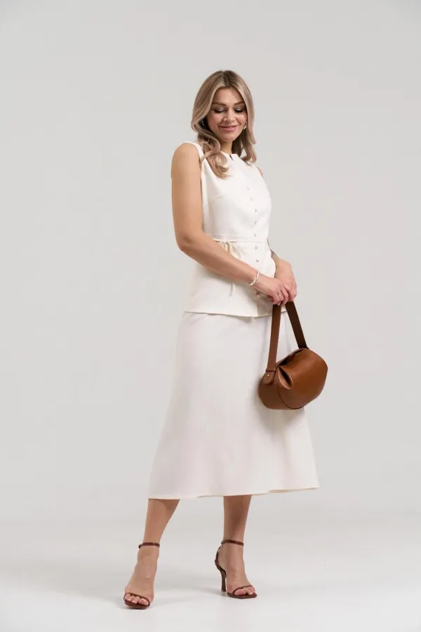 Комплект состоит из жилета и юбки.