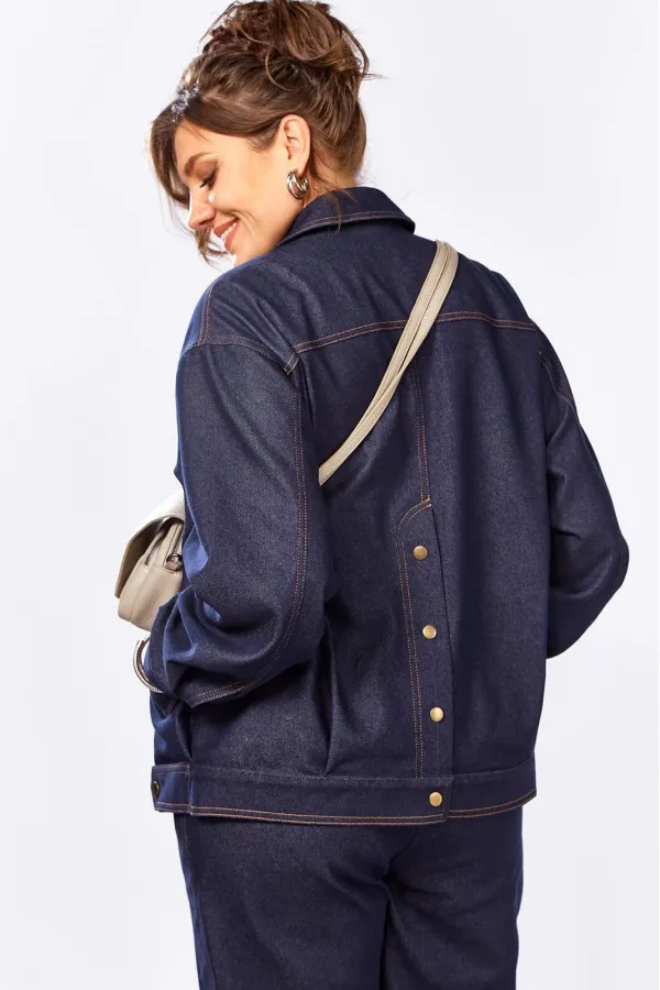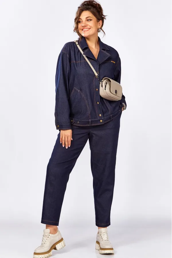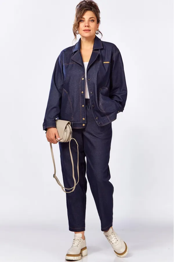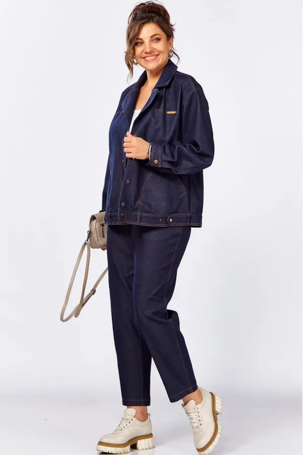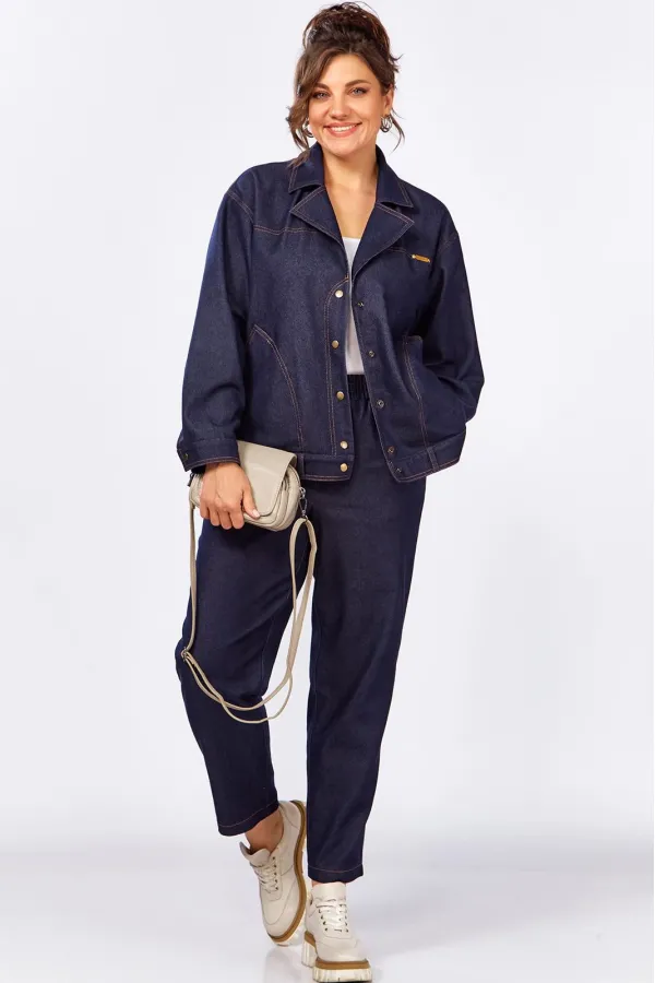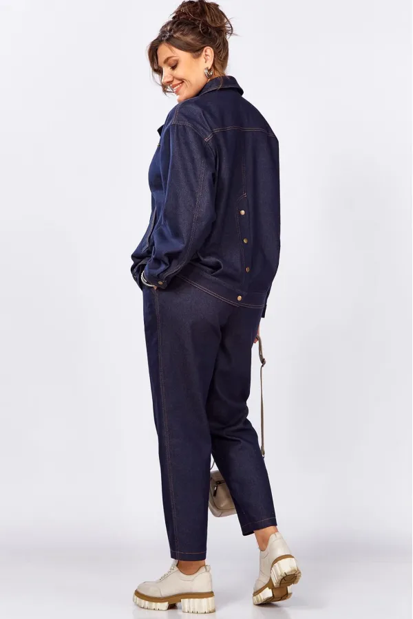 Уникальный дизайнерский брючный костюм из джинса. Жакет свободного силуэта без подкладки. Застежка на кнопки. Брюки за счет выгодного кроя и пояса на резинке невероятно комфортные, не будут сковывать ваши движения. Этот стильный костюм, сделает ваш лук живее и интереснее!