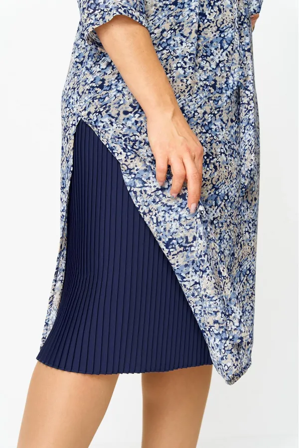 Женский комплект 2-х предметный, состоит из туники и платья. Платье прямого силуэта, с круглым вырезом горловины, обработанного стояче-отложным воротником с отрезной стойкой. Перед с нагрудными вытачками, застежкой-планк... Читать далее...