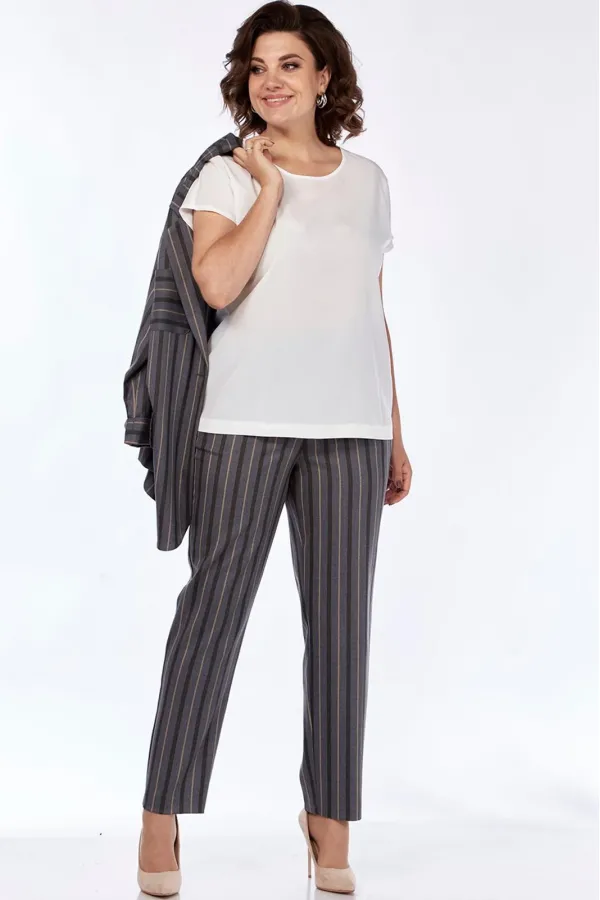 Костюм женский стильный офисный деловой брючный. Костюм брючный трех предметный. Состоит из жакета, блузы (полиэстер 100%) с коротким рукавом и брюк. Жакет прямого силуэта, без подкладки, удлиненный. Воротник пиджачного ... Читать далее...