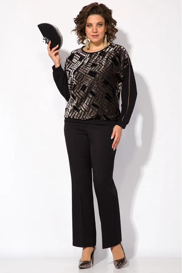 Стильный, элегантный, в меру дерзкий женский комплект, состоящий из джемпера и юбки станет отличным дополнением к Вашему осеннему гардеробу. Джемпер свободного силуэта, со спущенной линией плеча и округлым вырезом горловины, выполнен из качественного однотонного трикотажа. Лиф и спинка изделия декорированы тканью с эффектом бархата. Рукав в модели на спущенной пройме, длинный. Низ изделия и рукава оформлен мягкой манжетой.