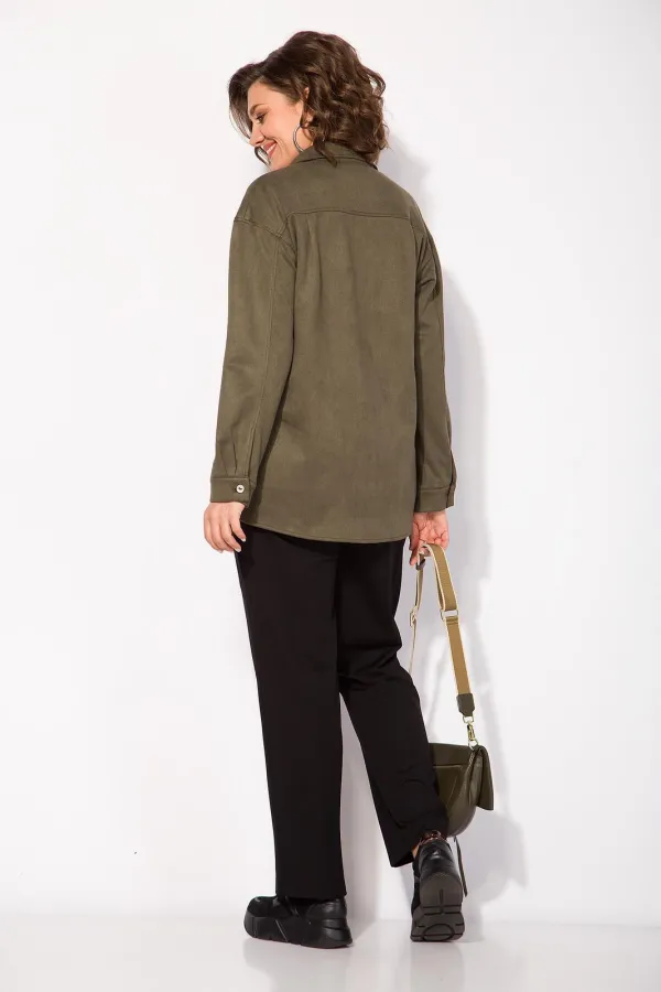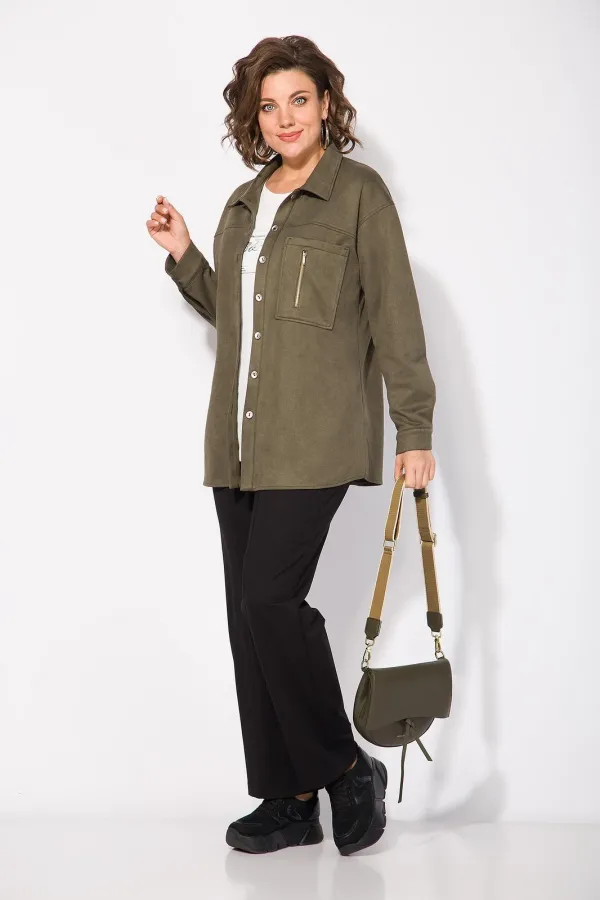 Комплект: топ, рубашка+брюкиЭта удлиненная замшевая рубашка от бренда Лилиана — must-have для стильных образов в духе Pinterest.Модель свободного силуэта с отложным воротником на стойке. Застежка центральная на петли и п... Читать далее...