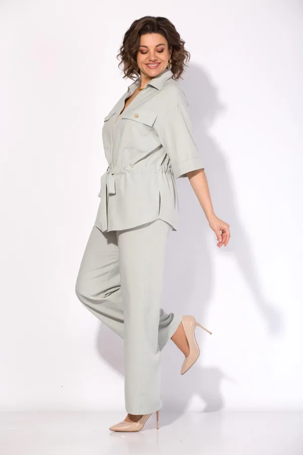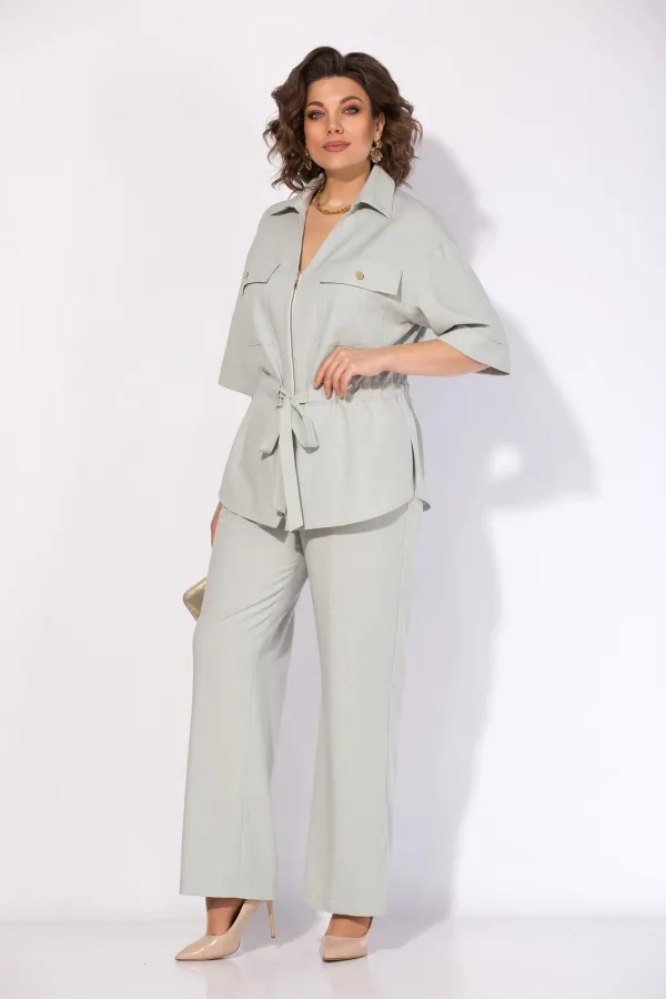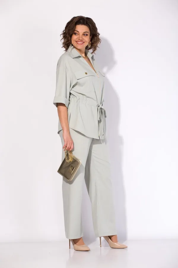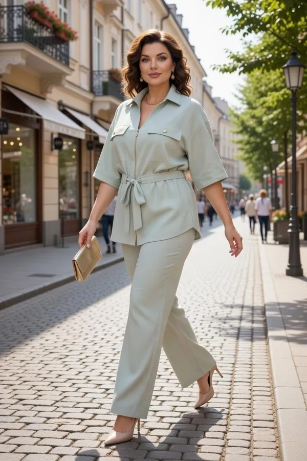 Эффектный женский костюм с брюками палаццо и свободным блузоном - это воплощение комфорта и актуального стиля! Модель выполнена из качественного легкого вискозного материала, с добавлением льна. Модный блузон-жакет с коротким рукавом, дополнен металлической молнией и стильными накладными карманами с клапаном. V-образный вырез горловины оформлен отложным воротником. Регулируемая кулиска с поясом-завязкой позволяет акцентировать внимание на талии или оставить силуэт более свободным. Брюки палаццо с широкими штанинами и высокой посадкой с боковыми карманами. Мягкая круговая резинка на поясе обеспечивает идеальное прилегание, не сковывая движений. Этот костюм-двойка — настоящий тренд, вдохновленный эстетикой pinterest (пинтерест). Блузон – 70 см, рукав – 40%.