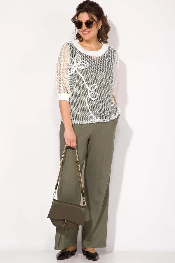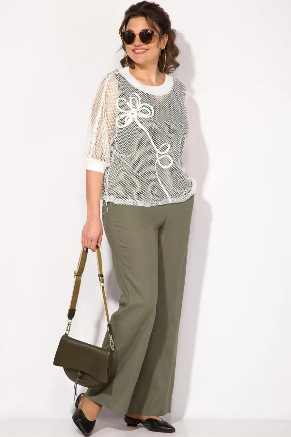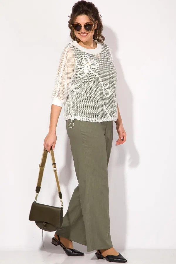 Длина топа – 55 см. Блузон – 60 см, рукав – 38 см. Брюки – 110 см.