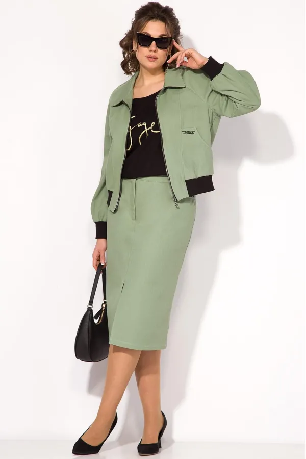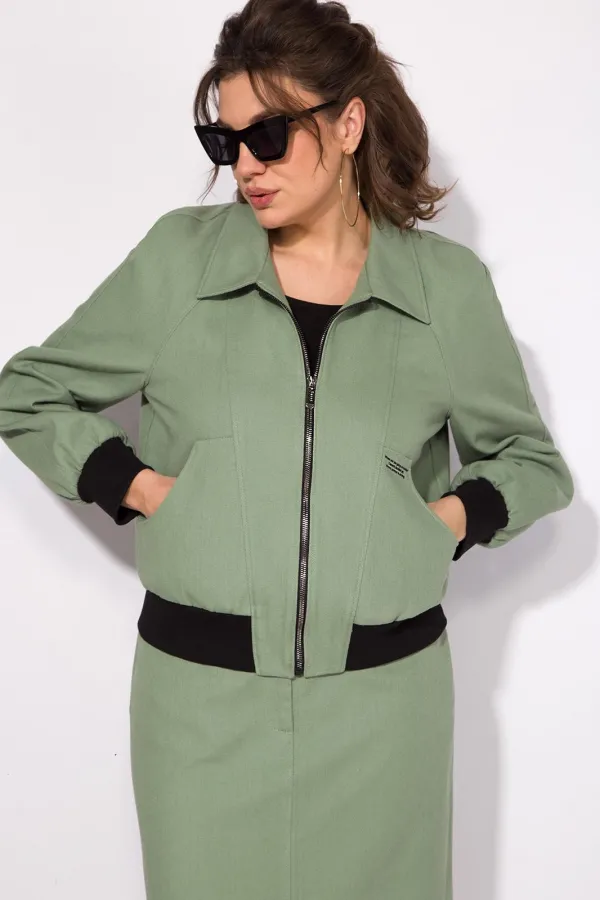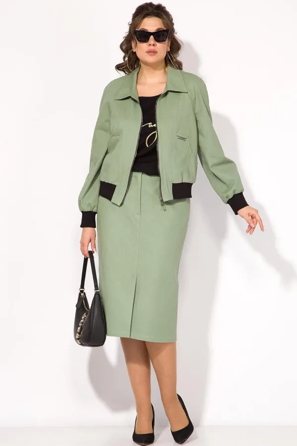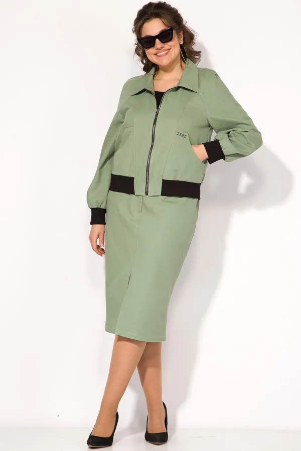 Эффектный джинсовый костюм, состоящий из жакета и юбки - представляет собой идеальное сочетание комфорта, стиля и универсальности. Жакет по типу бомбера, с рукавом покроя реглан. Воротник отложной, застежка центральная н... Читать далее...
