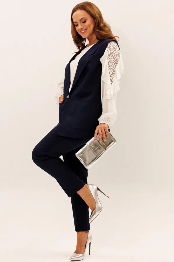 Комплект женский 3-х предметный: жилет, брюки и блуза.