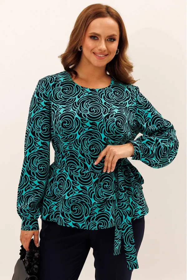 Блузка полуприталенного силуэта с отрезной баской по переду по линии талии.
