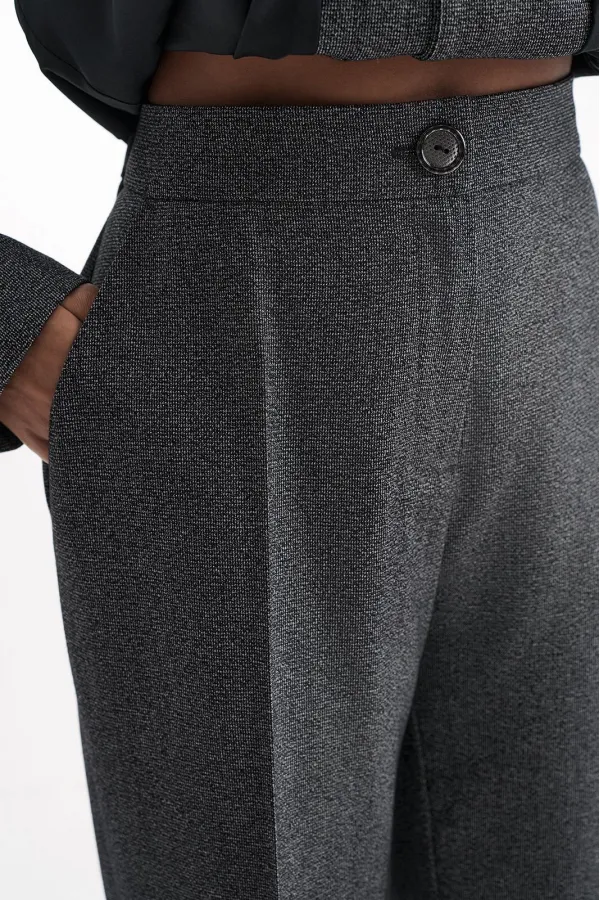 Брюки на притачном поясе с резинкой. Передние половинки с наклонными карманами к боковым швам.