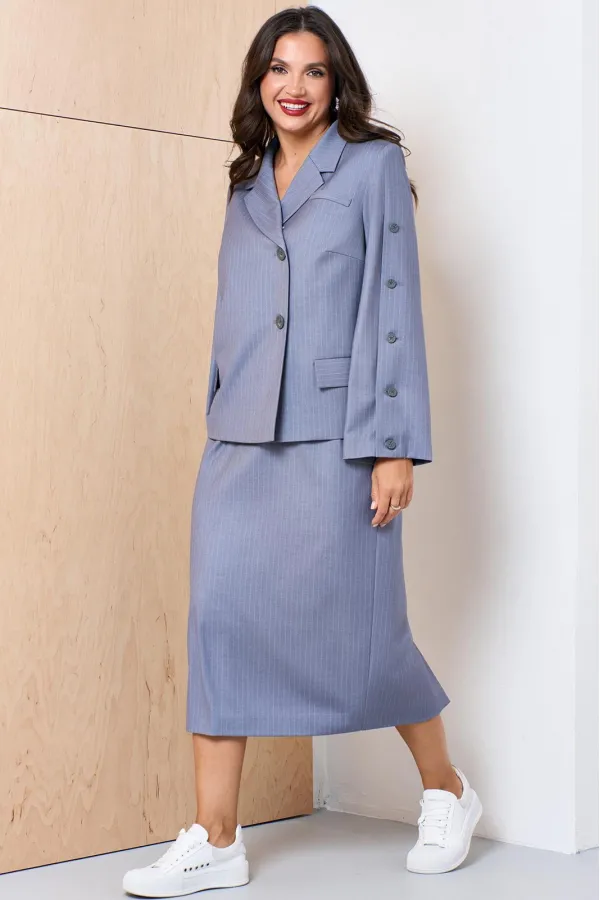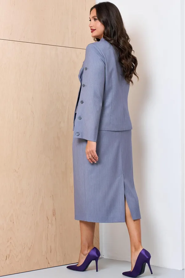 Костюм юбочныйЖакет со стояче-отложным воротником пиджачного типа и смещённой застёжкой на петли и пуговицы. Перед с карманами с клапанами в нижней части. Спинка со средним швом и талиевыми вытачками. Рукава втачные с пу... Читать далее...