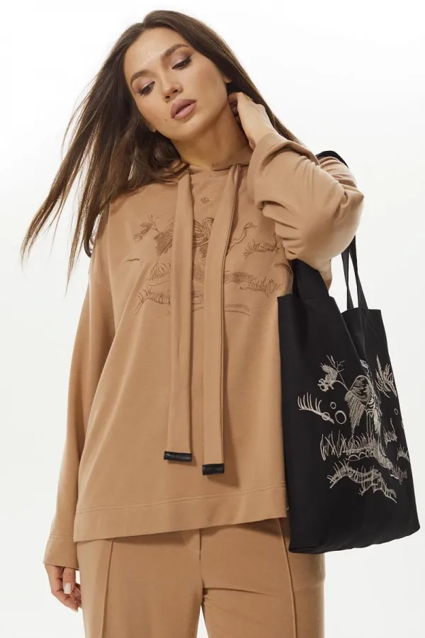 Худи и брюки можно приобрести раздельно. Модели 1049 и 2030 соответственно. В дополнение к образу можно приобрести шоппер 5003 с аналогичной вышивкой (на фото).