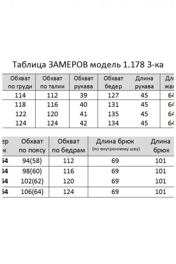 | Ткань | Состав жакета и брюк: 65% пэ 32% вискоза 3% спандекс. Блузка: 95% пэ 5% спандекс. |