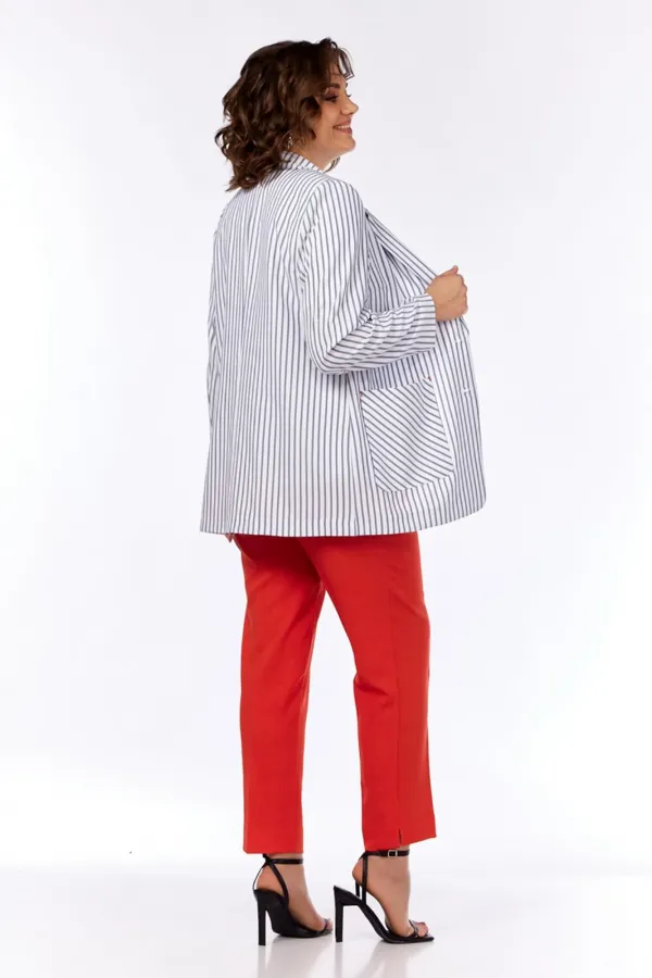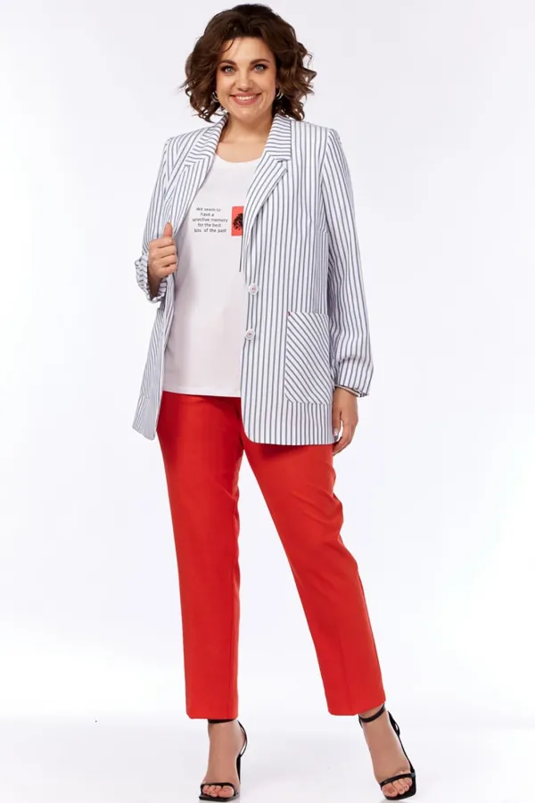 | Ткань | состав жакета и брюк: лён-70% пэ-30%; состав футболки: вискоза-60% пэ-35% спандекс-5% |