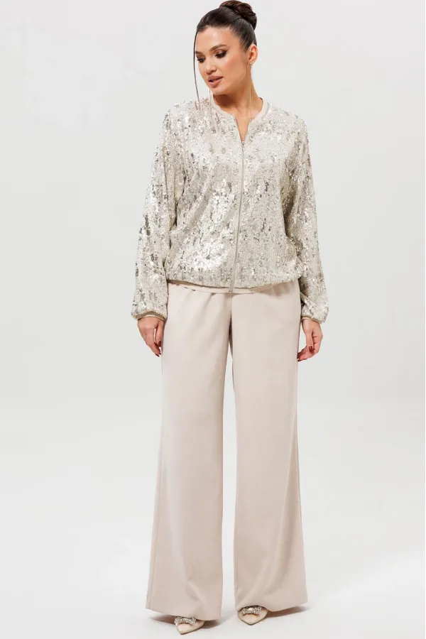 Этот готовый костюм с бомбером из пайеток (Арт. 1279) — идеальное решение для тех, кто хочет выглядеть ярко и стильно. Комплект включает в себя бомбер с пайетками и соответствующие ему брюки из костюмной ткани с напылением. Мерцающая куртка и светлые брюки создают целостный и дерзкий ансамбль, который не останется незамеченным. Такой костюм для вечеринки станет вашим лучшим выбором для посещения клуба, тематического мероприятия или любого события, где важно подчеркнуть свою индивидуальность. Размеры 48-54.