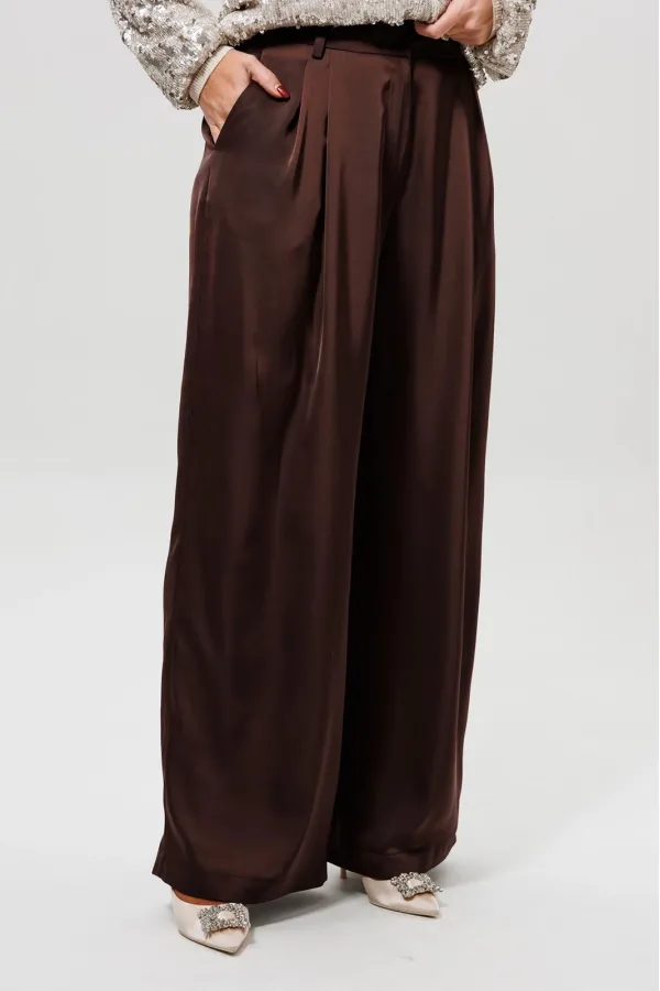 Костюм состоит из жакета и брюк. Жакет(бомбер) полностью покрыт мерцающими пайетками, которые создают неповторимый блестящий эффект при каждом движении. Бомбер с пайетками отлично сочетается с коктейльными платьями, базовыми топами и джинсами, позволяя создавать как дерзкие, так и элегантные луки. Эта пайеточная куртка станет главным акцентом вашего наряда для вечеринки, посещения клуба или романтического свидания. Брюки выполнены из атласной ткани, расширены к низу. На передних половинках брюк обработаны 2 складки и боковые карманы. На задних – талиевые вытачки. Застёжка на молнию и 2 потайных крючка. Эти атласные брюки (Арт. 1282) — Must Have для создания безупречного вечернего или праздничного образа. Модель представлена в двух богатых оттенках: насыщенном красном и глубоком шоколадном. Брюки выполнены из блестящей атласной ткани, которая мягко струится, подчеркивая изящество каждого движения. Атласные брюки с завышенной талией обеспечивают комфортную посадку и визуально вытягивают силуэт.