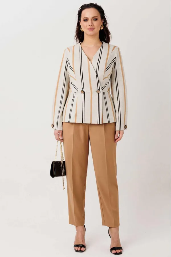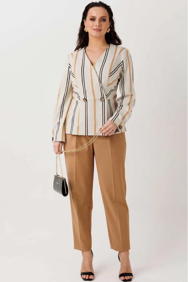 | Ткань | трикотаж+костюмная ткань - жакет: полиэстер 64% вискоза 33% спандекс 3%; брюки: полиэстер 100% |