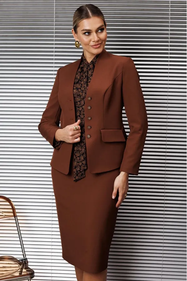 | Ткань | Жакет юбка: п/э 63% вискоза 35% спандекс 2%. Блуза: п/э 100% шифон. |
