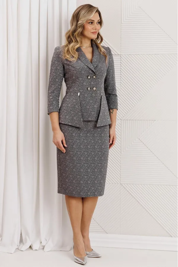 Что сделает комплимент Вашей фигуре? Правильный силуэт! Костюм от бренда Мода-Юрс подчеркнет все изгибы и достоинства Вашей фигуры. Жакет полуприлегающего силуэта с отрезной баской фигурной формы и воротником шалька. Перед с рельефами, выходящими из проймы. Спинка со средним швом. Рукав втачной, двухшовный. Юбка прямая, зауженная к низу, сзади со средним швом, переходящим в шлицу. Застежка на тесьму-молнию. Пояс притачной, по бокам с резинками. Жакет и юбка на подкладке.