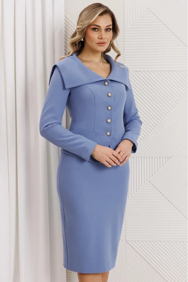 Этот нарядный костюм представляет собой элегантное и утонченное решение для особых случаев. Жакет полуприлегающего силуэта подчеркивает фигуру и обладает стильной центральной застежкой на изысканные пуговицы, что придаёт ему нотку шика. Рельефные линии, идущие от проймы, создают визуальную стройность, а баска по низу. Юбка прямая, зауженная к низу, сверху на притачном поясе. Юбка прямая, зауженная к низу, сверху на притачном поясе. Застежка на тесьму-молнию в среднем шве, который переходит в шлицу. Костюм на подкладке