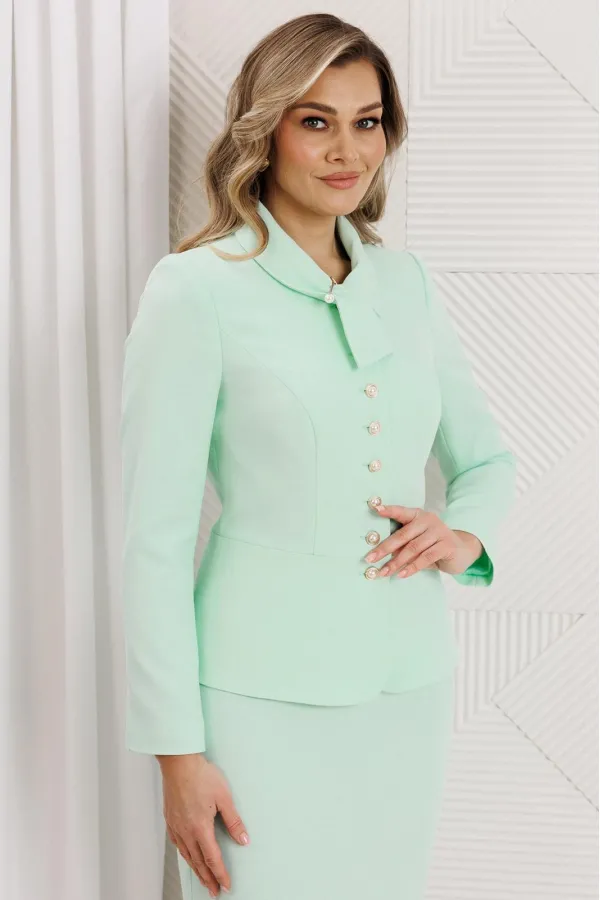Элегантность с характером. Именно так можно описать одну из моделей от брэнда Мода-Юрс. идеально впишется в модный гардероб и подчеркнет вашу ествественную красоту. Жакет полуприлегающего силуэта с рельефами, отрезной по линии талии , спинка со средним швом. Рукав втачной двухшовный. Воротник декорирован протяжкой. Застежка центральная на петли пуговицы,сверху на крючок.