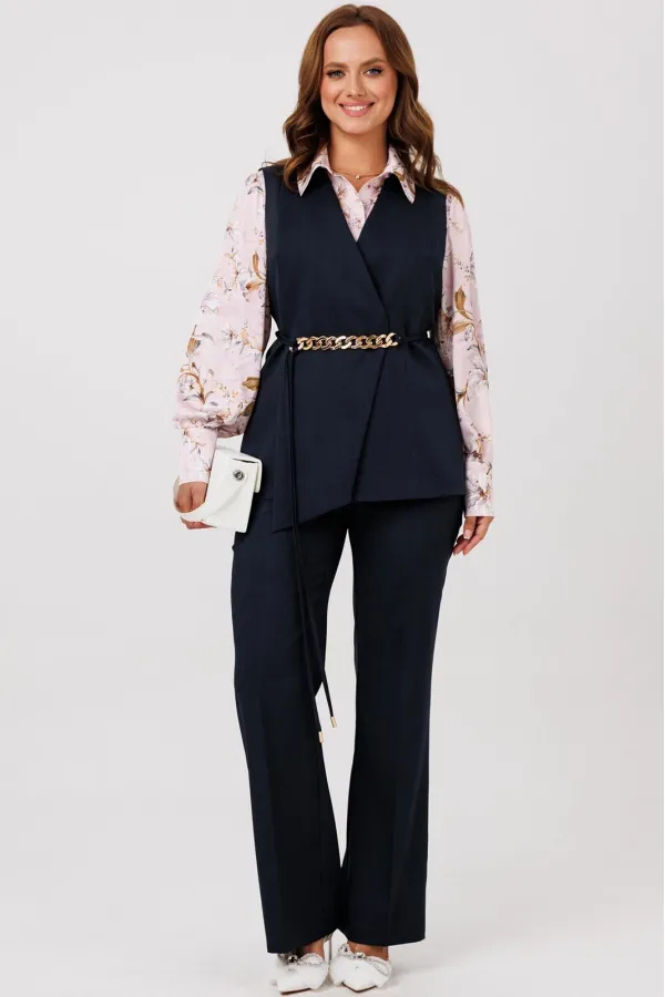 Комплект женский, состоящий из жилета, блузы и брюк.