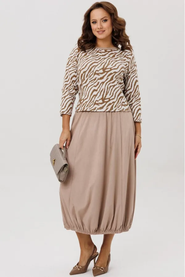Стильный женский костюм, состоящий из джемпера и юбки.