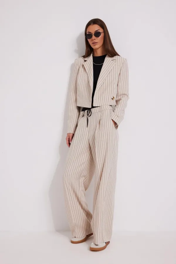 | Ткань | Жакет брюки – вискоза 65% полиэстер 32% спандекс 3%; Топ – вискоза 64% хлопок 32% спандекс 4% |