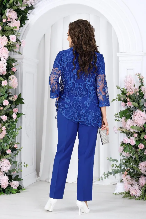 6109 Комплект брючный Комплект брючный 3-х предметный, состоящий из кардигана, блузки и брюк.Кардиган прямого силуэта, выполнен из гипюра. Модель без застежки, без подкладки и плечевых накладок. Перед с нагрудными вытачк... Читать далее...