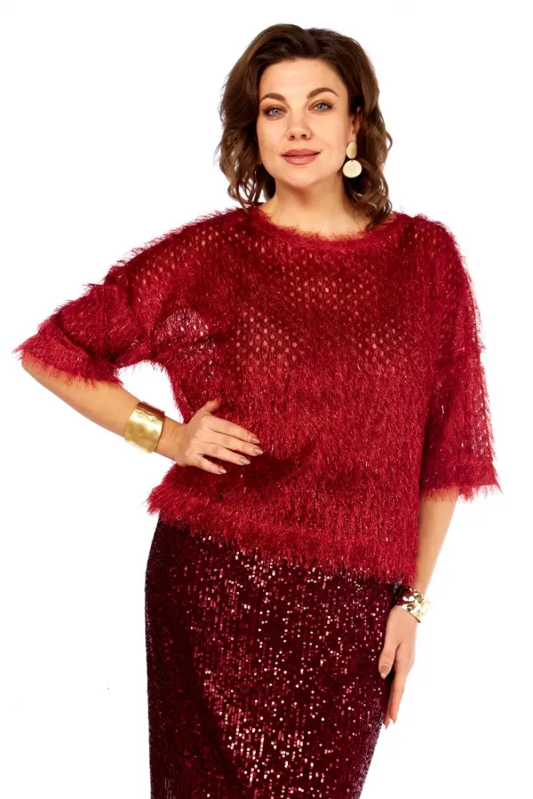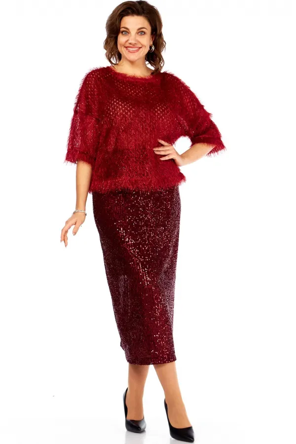 Шикарный комплект, сочетающий мягкую бахрому и паетки -must-have сезона. Блузка нарядная прямого силуэта, из интересной ткани с бахромой. Вырез горловины округлой формы, со спущеныным рукавом длиной 3/4. Юбка длиной миди... Читать далее...