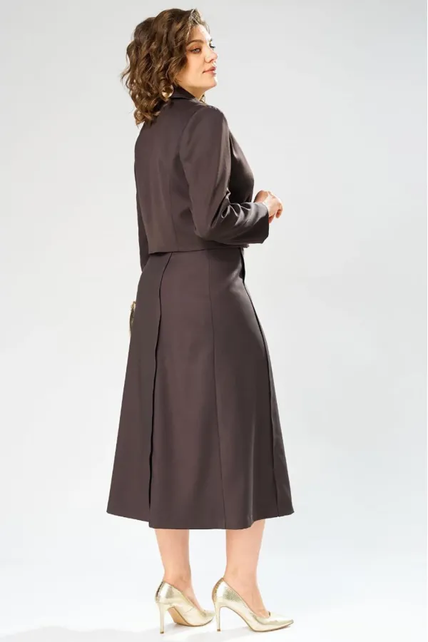 Перед вами женский комплект из двух предметов, включающий жакет и юбку.