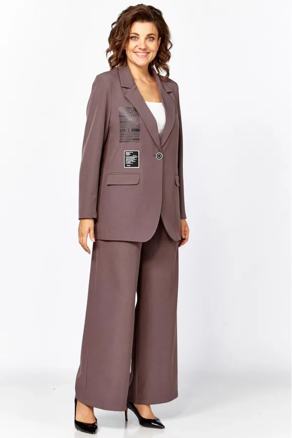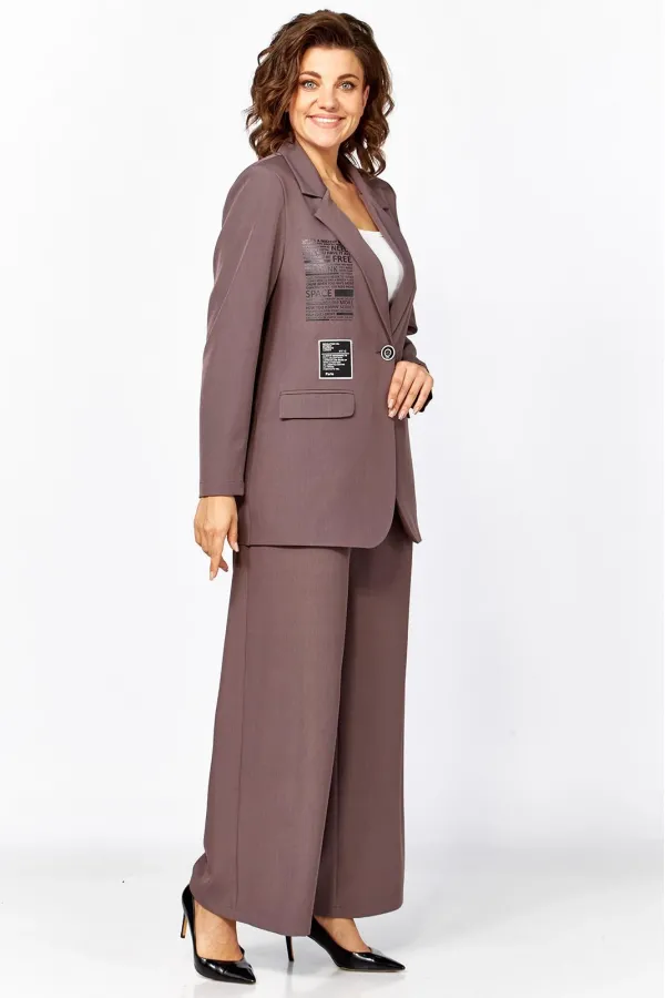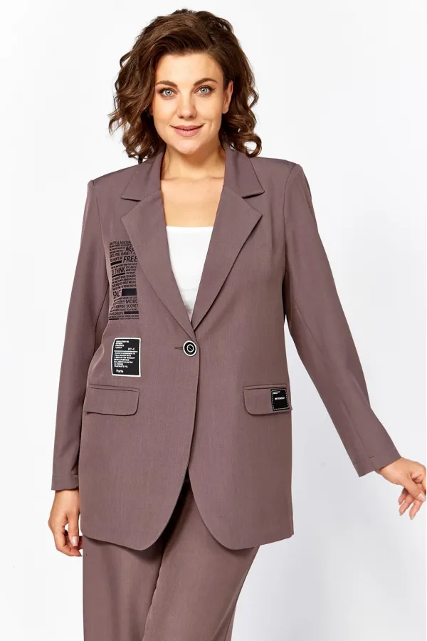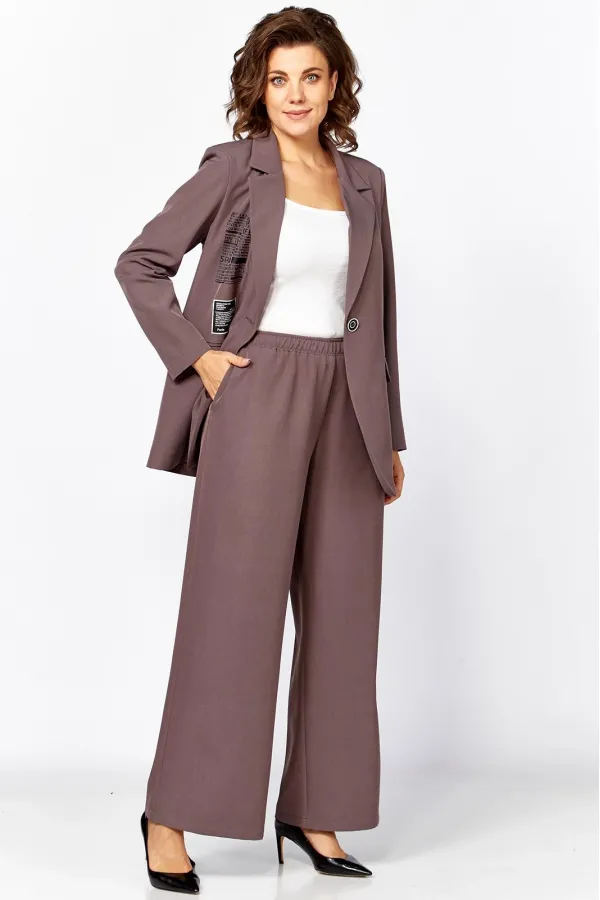 Комплект женский двухпредметный, состоящий из жакета и брюк. Стильный и непринужденный образ, который подчеркнет хрупкость и утонченность, скроет несовершенства фигуры. Комплект отлично подойдет как для повседневной носки, так и для праздничных выходов, достаточно дополнить его соответствующими аксессуарами. Предметы комплекта легко будут сочетаться с вещами из Вашего гардероба.