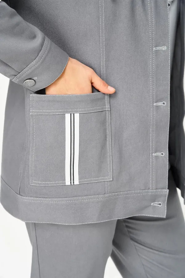 | Ткань | Куртка и брюки: 63% полиэстер 35% вискоза 2% спандекс Туника: 65% вискоза 30% полиэстер 5% спандекс |