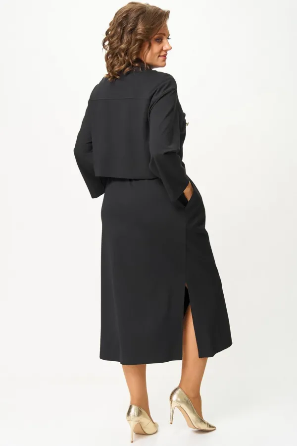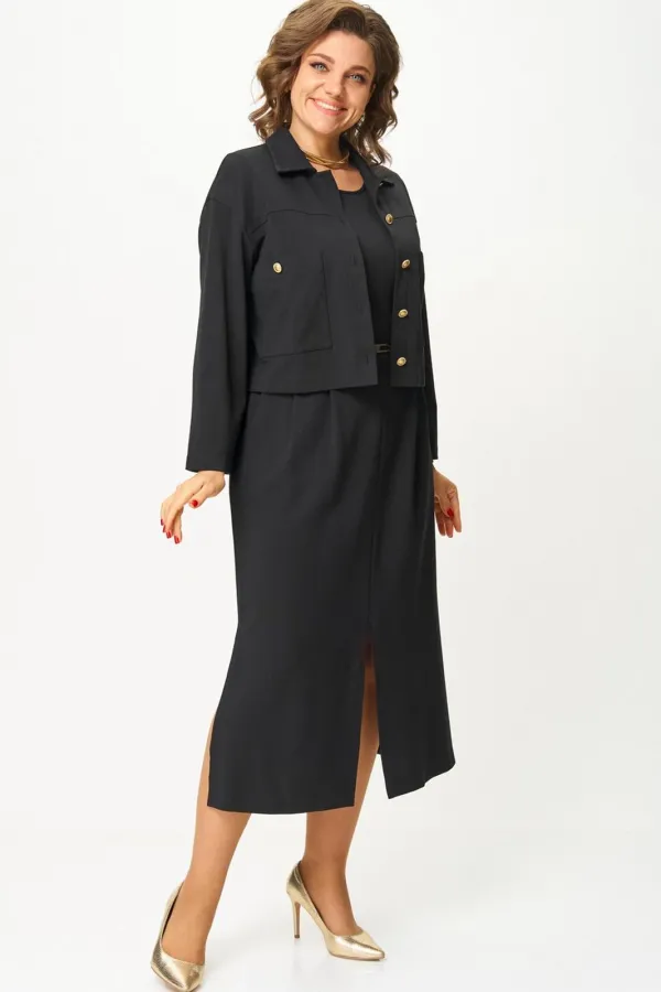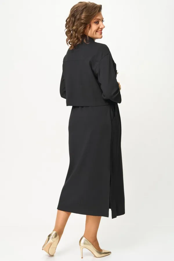 Костюм женский двухпредметный из эластичного трикотажного полотна состоящий из платья и жакета.